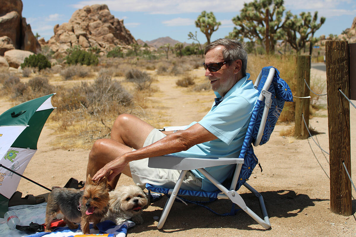 This is where Bob Oviedo picnics in the desert sun of Joshua Tree National Park with his two small dogs. “It’s amazing that there’s so much growth here in the desert, with the heat that we have here,” says Mr. Oviedo, who lives about 45 minutes away in Palm Desert. He stopped in the park after a work trip nearby.