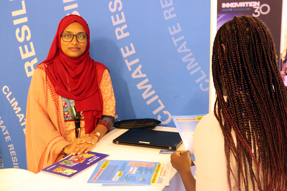 Farzana Faruk Jhumu has spent COP crisscrossing the 2-square-mile expo center, racing from the United Nations women’s pavilion, to informal negotiation talks, down to the Bangladesh pavilion, and to the UNICEF pavilions where she distributes brochures and speaks to visitors.