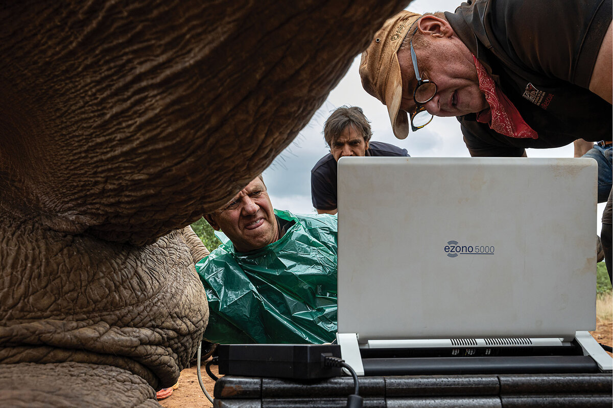 Everyone on the team is relieved when an ultrasound performed by the project’s lead scientist, Thomas Hildebrandt of the Leibniz Institute for Zoo and Wildlife Research, shows the animal’s reproductive potential to be high. His semen is extracted into vials that will then be flown by helicopter to a field lab to be gradually frozen. These will be shipped to a cryobank at ZooParc de Beauval in France.