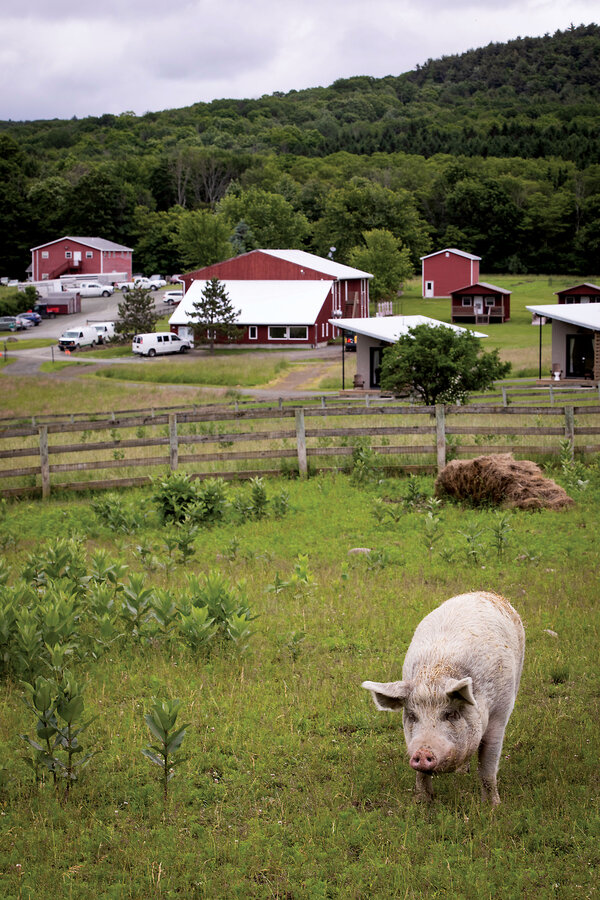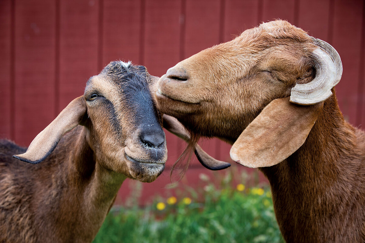 On tours at Farm Sanctuary, guides introduce visitors to goats who make family groups; cows who, when no longer confined to dairy barns, prance and play and take care of their young; and pigs who, given the space, build themselves nests in a barn but go outside to relieve themselves.