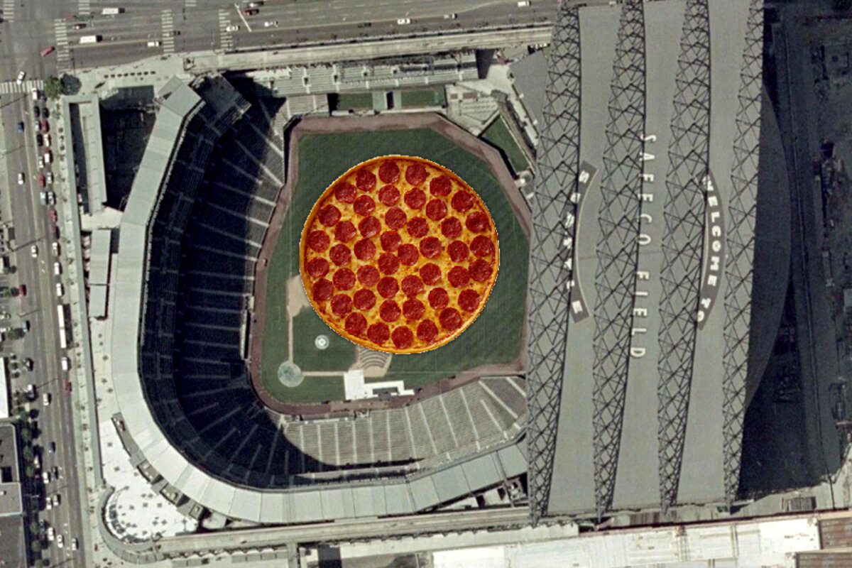 Here's what it the pizza would look like if it were dropped on Seattle 's Safeco Field .