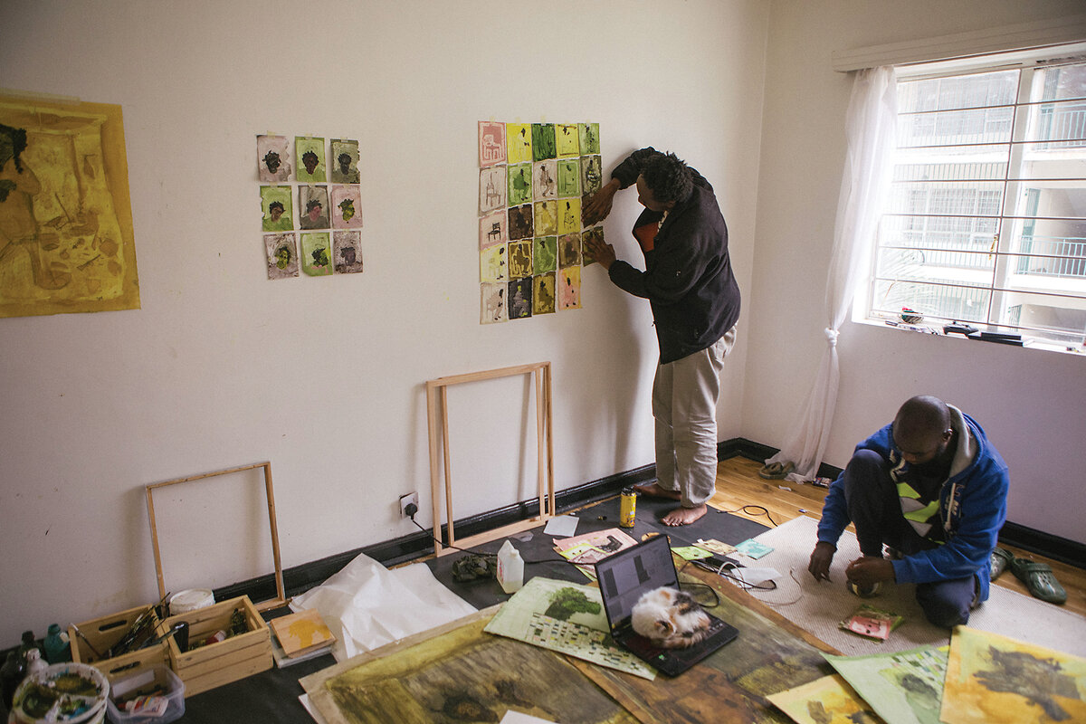 He hopes his friend will stay in Nairobi, where they recently debuted their paintings to the Kenyan public. But he asks wistfully, “Who knows about the future?”