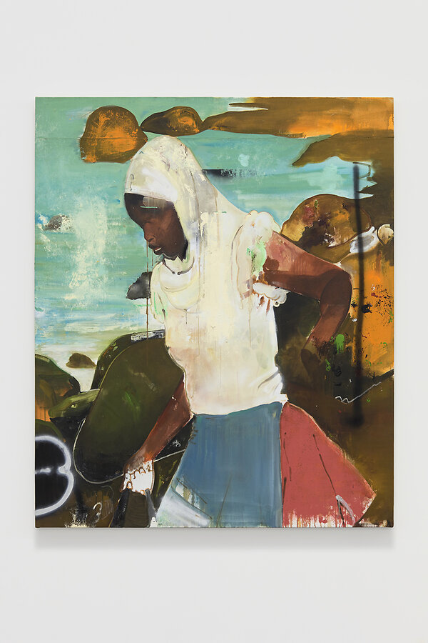 “I think water is one thing we can all look to, to talk about a common ancestry, a shared mobility. But water, the ocean I should say, it’s fun to paint, on an aesthetic level. It holds a lot of meaning, and it’s fluid,” he says in a video conversation with Mr. Wimberly released by the Gantt Center.