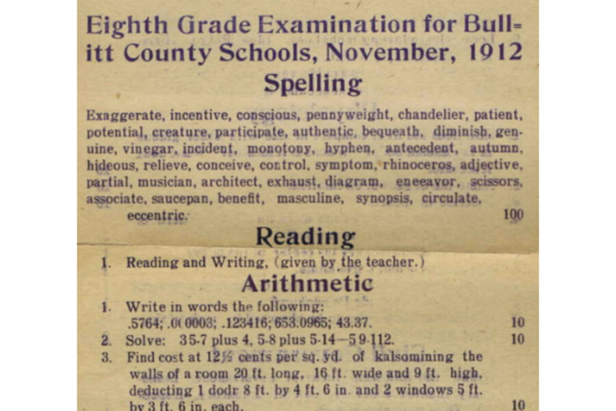 Explore values journalism About usA 1912 eighth-grade exam was donated to a museum in Bullitt County , Ky.