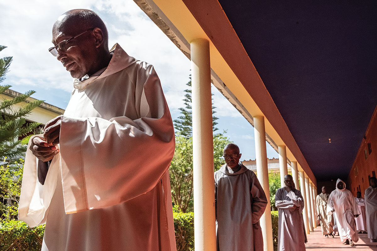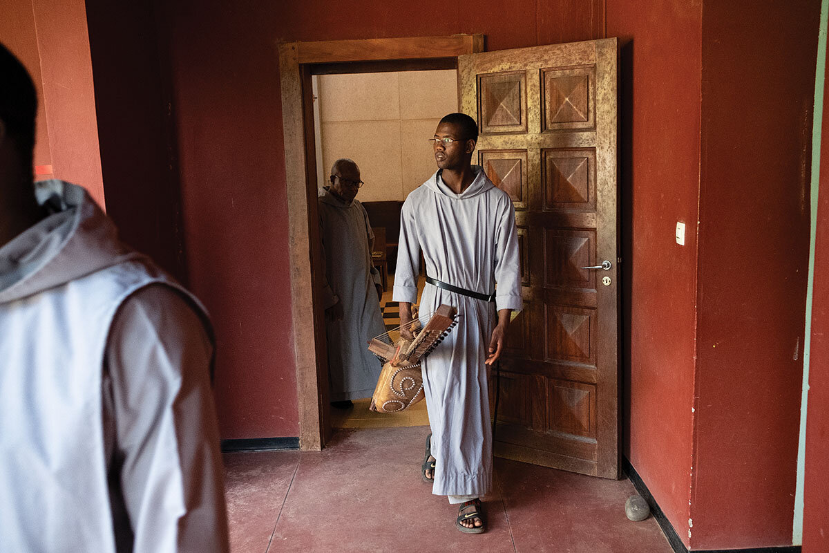 Morning sun filters into the monastery church as the melodic twang of two harplike instruments – known as koras – fills the air, combining with the voices of two dozen singing monks. The music rises up the white walls and out through the latticework near the roof – lyrical, looping melodies filled out by warm bass notes.