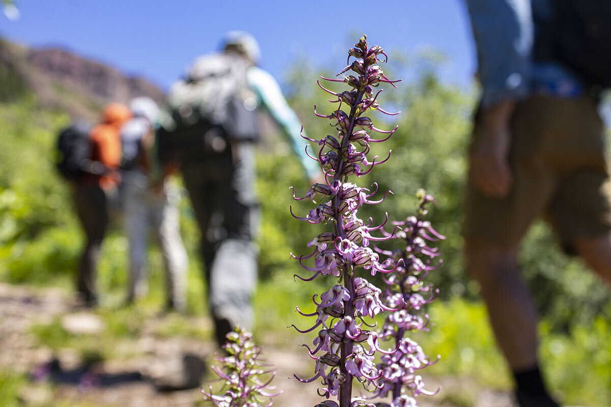 “Botanizing” plants along the way – identifying species by guidebook, app, or naked eye – resembles celebrity sightings. Bluebells, sneezeweed, and columbine stop the hikers in their tracks.