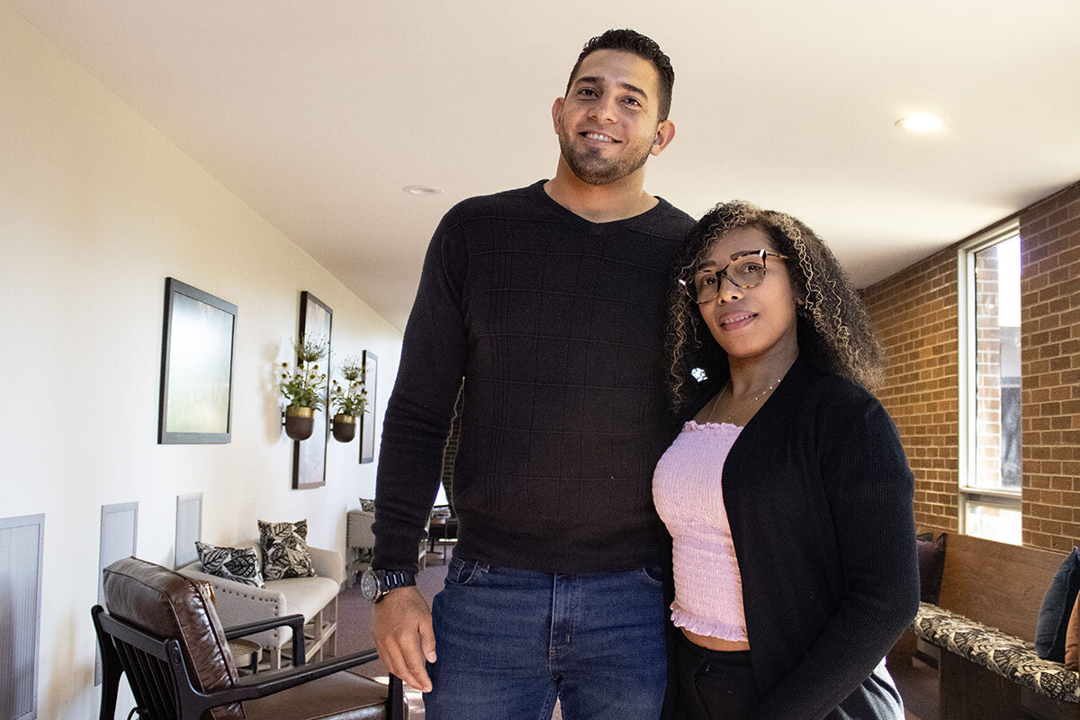 Yuletsy and Rafael, a couple from Venezuela, count their blessings. Ms. Rodríguez helped them find an apartment to rent.