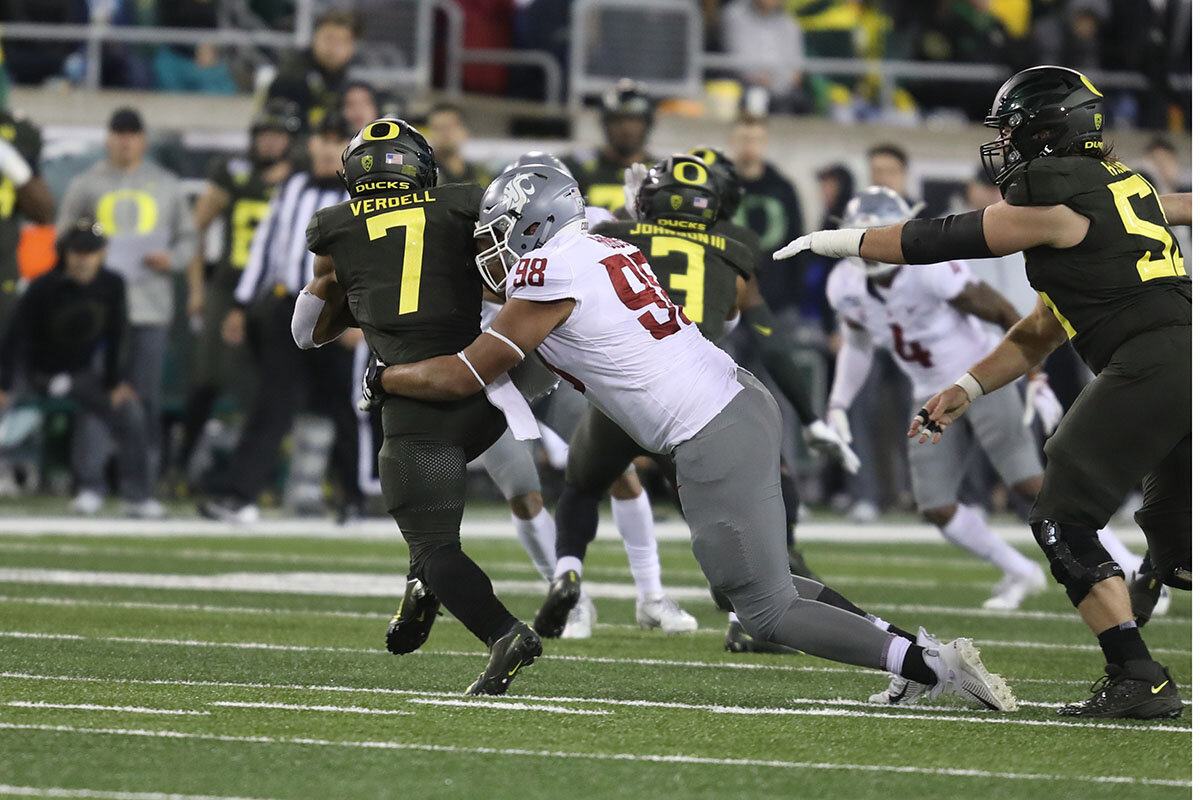 “Hey, coach!” he greets WSU head football coach Nick Rolovich in passing. Then he steps into the empty WSU stadium and strides onto the turf at center field, recalling the night three years ago his team defeated the University of Southern California (USC) Trojans in overtime, and elated fans rushed the field.