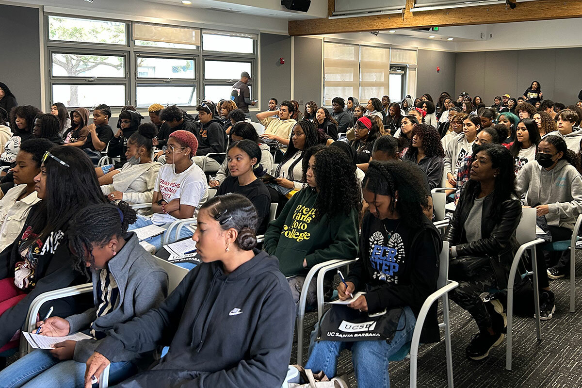Almost 200 mostly Black students from six high schools in Southern California’s Woodland Hills, some 80 miles southeast, have just left UCSB’s Loma Pelona Center. They spent the day listening to speakers, watching performances, and munching on catered grilled tri-tip, barbecue chicken, baked beans, potato salad, salad, freshly made garlic bread, and rice and peppers.