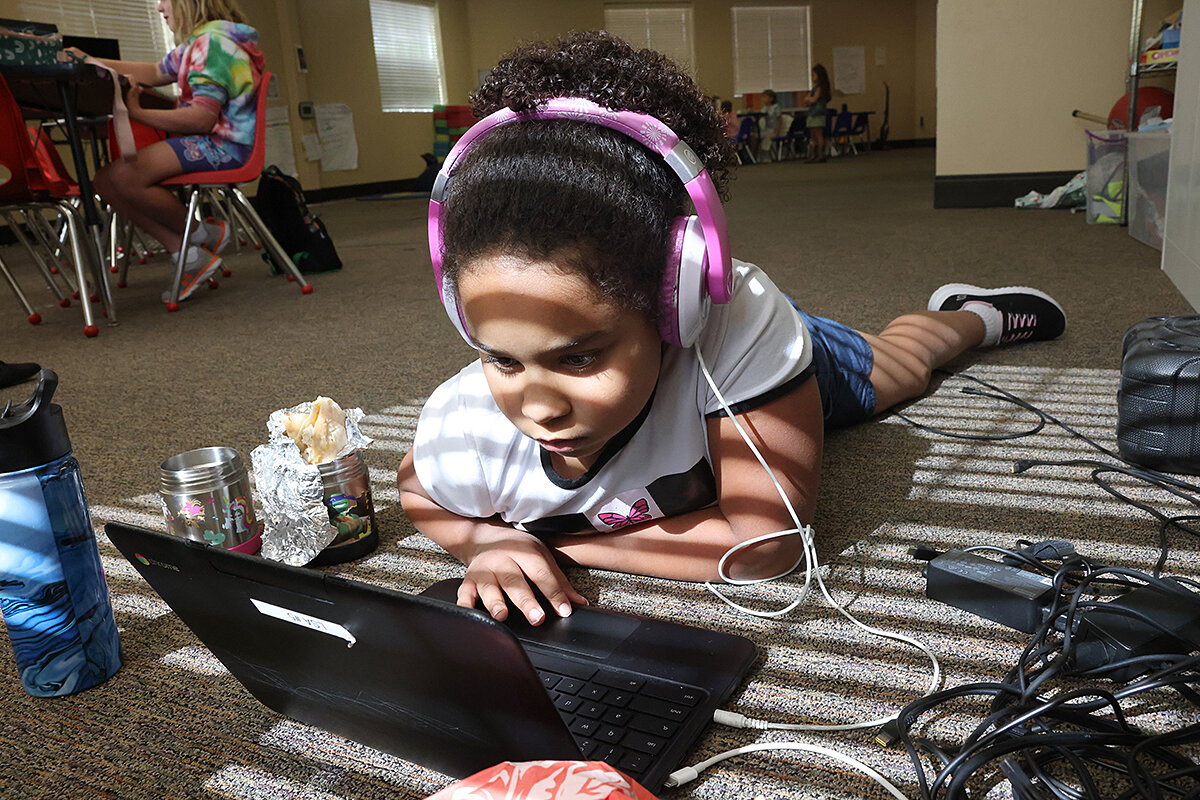 That journey may look like learning about first aid or purifying water with a solar cell as part of a desert island survival-themed unit. There are no academic standards directly tied to those lessons, Ms. Wright says, but The Learning Outpost weaves in “mini lessons” about more traditional subjects – phonics and math, for instance – throughout the day.