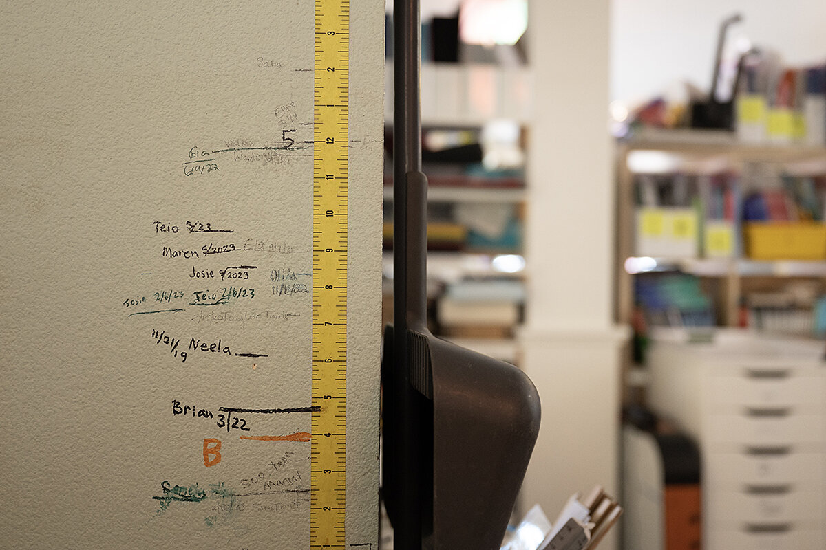 By August 2016, a brown duplex had been transformed into a yellow schoolhouse, complete with a red front door and a cupola containing a bell. A treehouse-inspired play structure built by Ms. Wintemute, a dirt pit for play excavation, and a garage converted into an art studio take up the backyard.