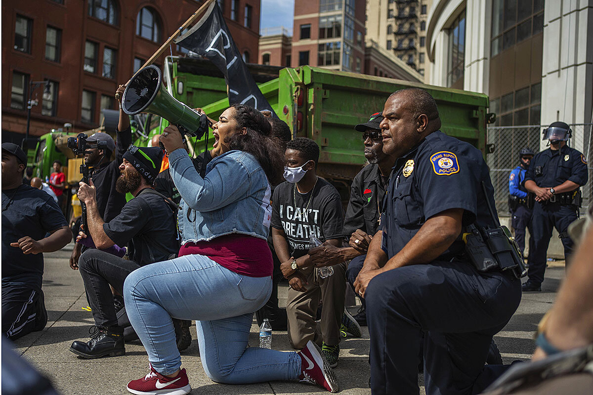 “Police officers kneeling alongside protesters has been a welcome start to many, signifying hope that a new way of communicating about police brutality is possible,” she says.