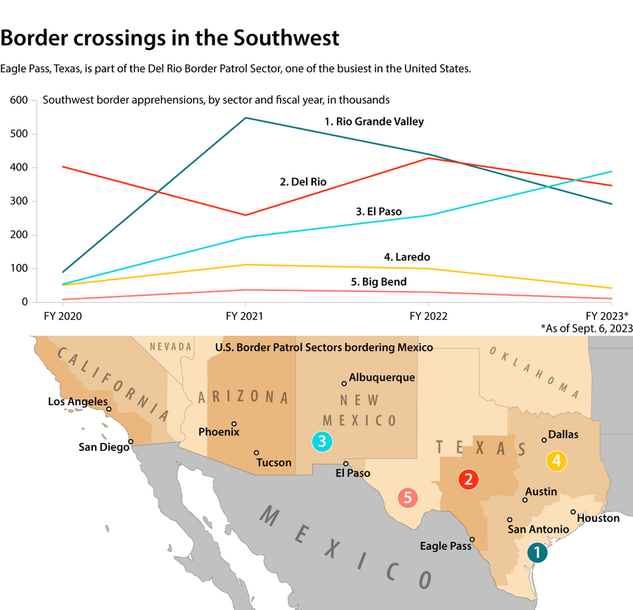 The chaos in Eagle Pass and on this section of the border is as much due to the Texas government as the migrants. For decades, local authorities have had good working relationships with Customs and Border Protection and with Mexican officials. And in Texas’ border cities, Border Patrol is a well-regarded employer and community member.