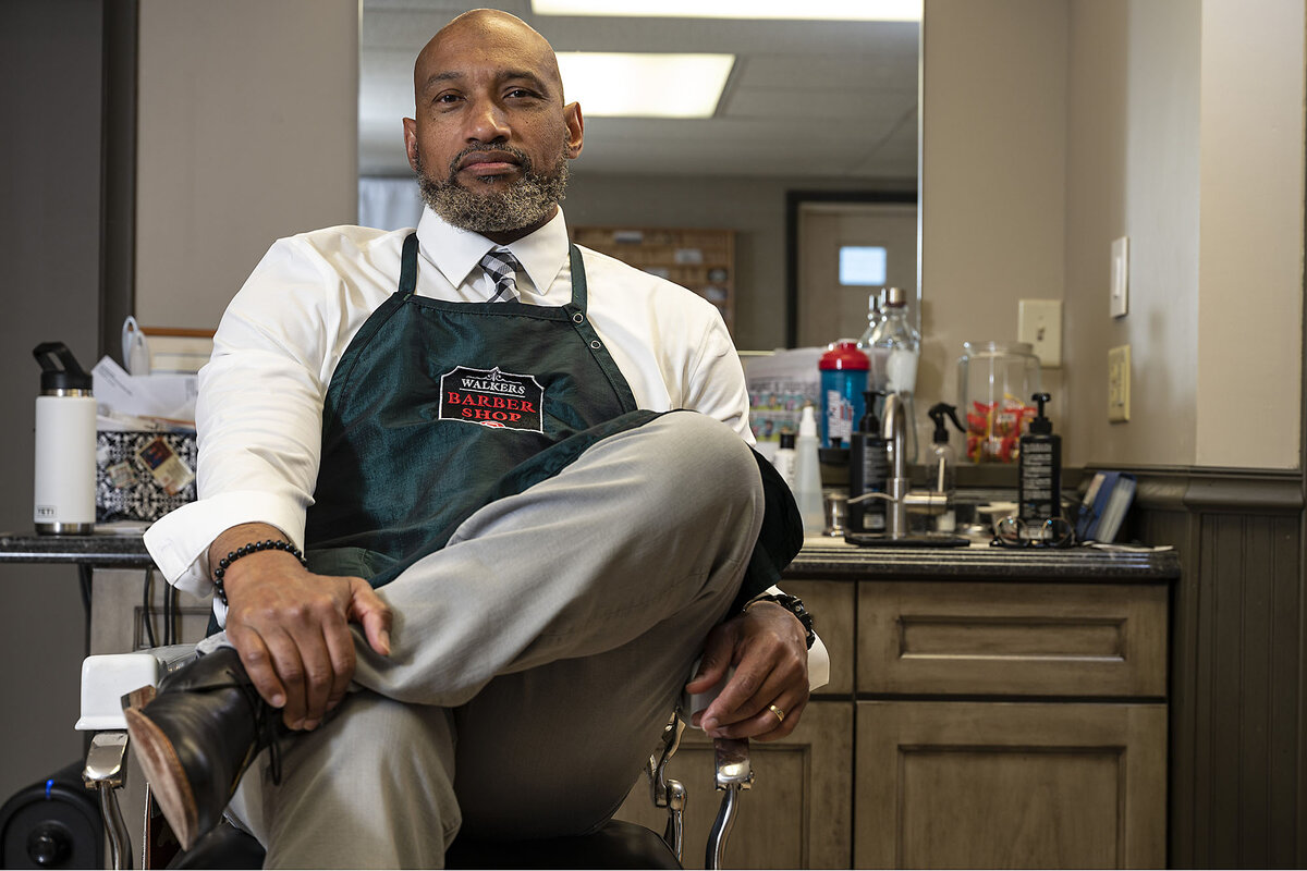 Classic R&B is playing at Lance Walker’s barber shop, a home business the former bodybuilder runs in the tiled basement of his modest ranch-style house here in Chambersburg.