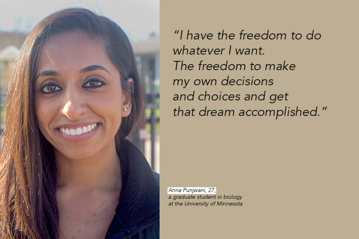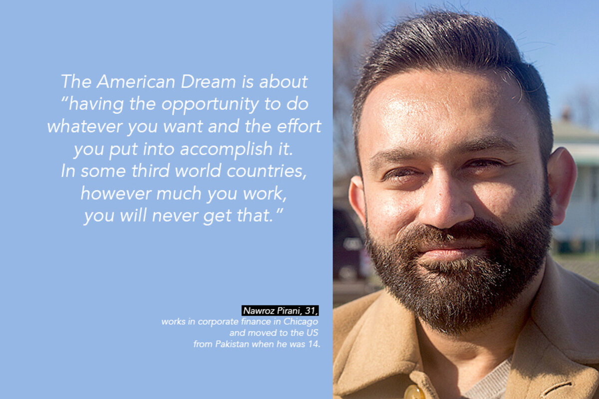 “I don’t think I would have been able to go to school, get a job, be able to afford certain things if I was still living in Karachi,” says Mr. Pirani, who moved to the US with his family when he was 14. In America, he says, people have not just the freedom to make their own decisions but also the opportunities they need to succeed.