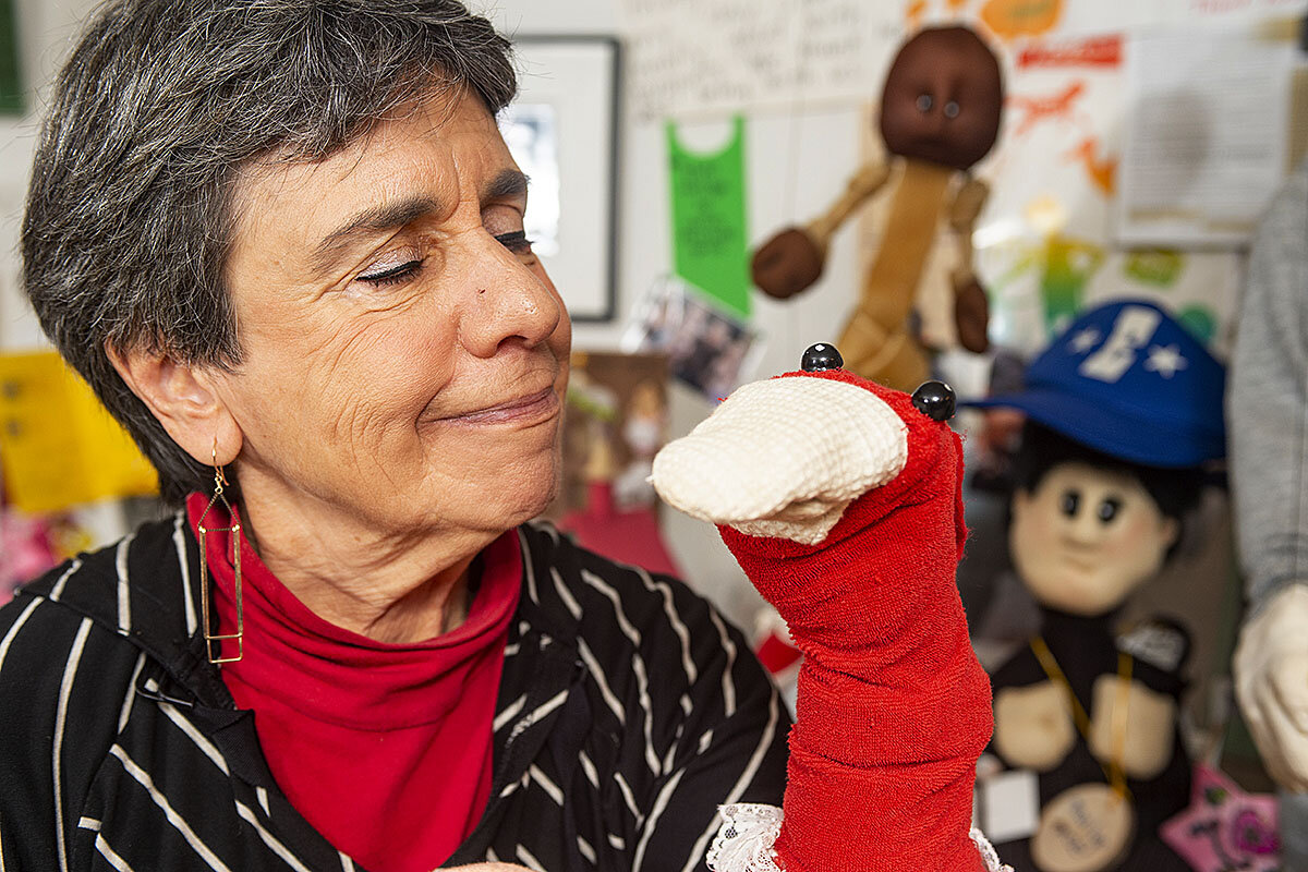 Her favorite thing is puppeteering – using puppets to tell stories. She chooses stories, often classics, that show children how to make their own lives better. “The Little Engine That Could” is a perennial favorite, she says.