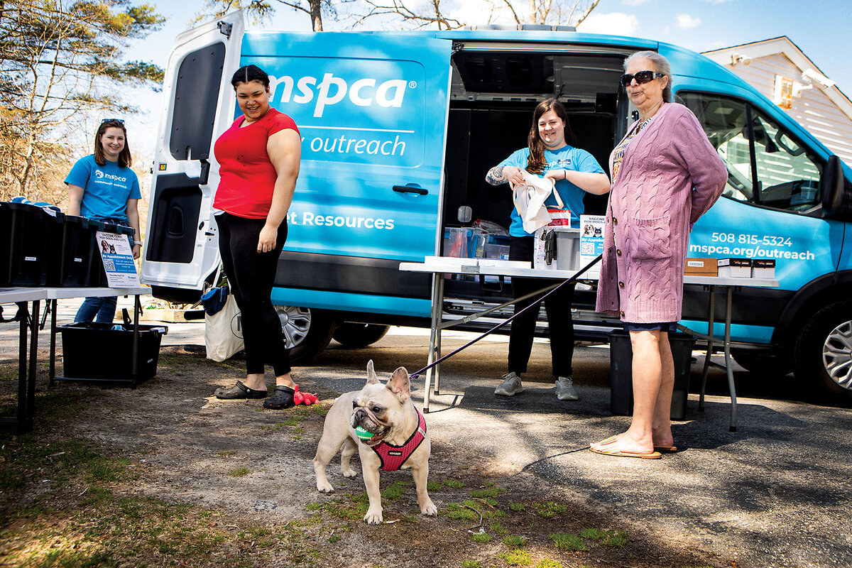 The team is careful not to admonish owners if they forgo spaying or neutering their pets. But it will happily support and facilitate those procedures, if asked. The MSPCA’s clinic also does microchipping, rabies vaccinations, and nail trims. And the outreach team’s pop-up pantries – blue vans stocked with pet food – have distributed more than 10 million meals since 2020.