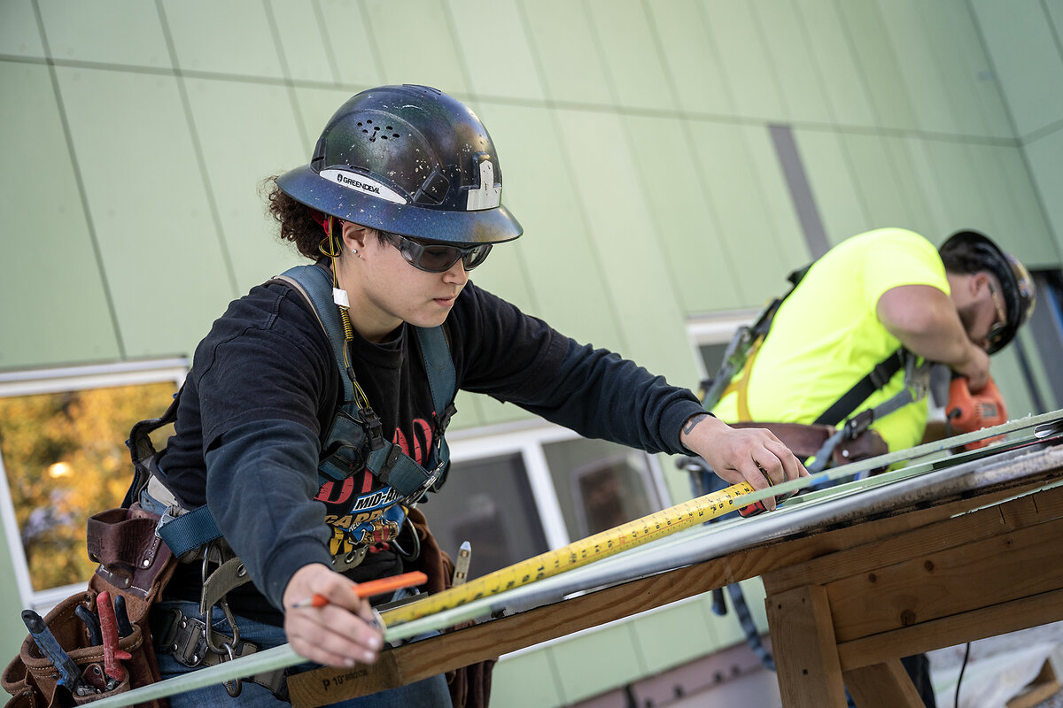 “I actually feel connected that there are others on the job that are like me, the only female on the crew,” she says. “It’s a good feeling to see that there are other women on the job, even though it has to be in different trades. There are times where you are the only woman on the job between all the trades.”