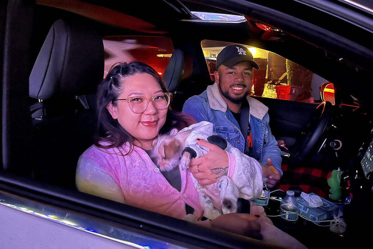 Ms. Tello and her family drove in from Reseda, about 15 minutes away, and parked nearby to meander these streets on foot, hot chocolate in hand, pajamaed children in tow.