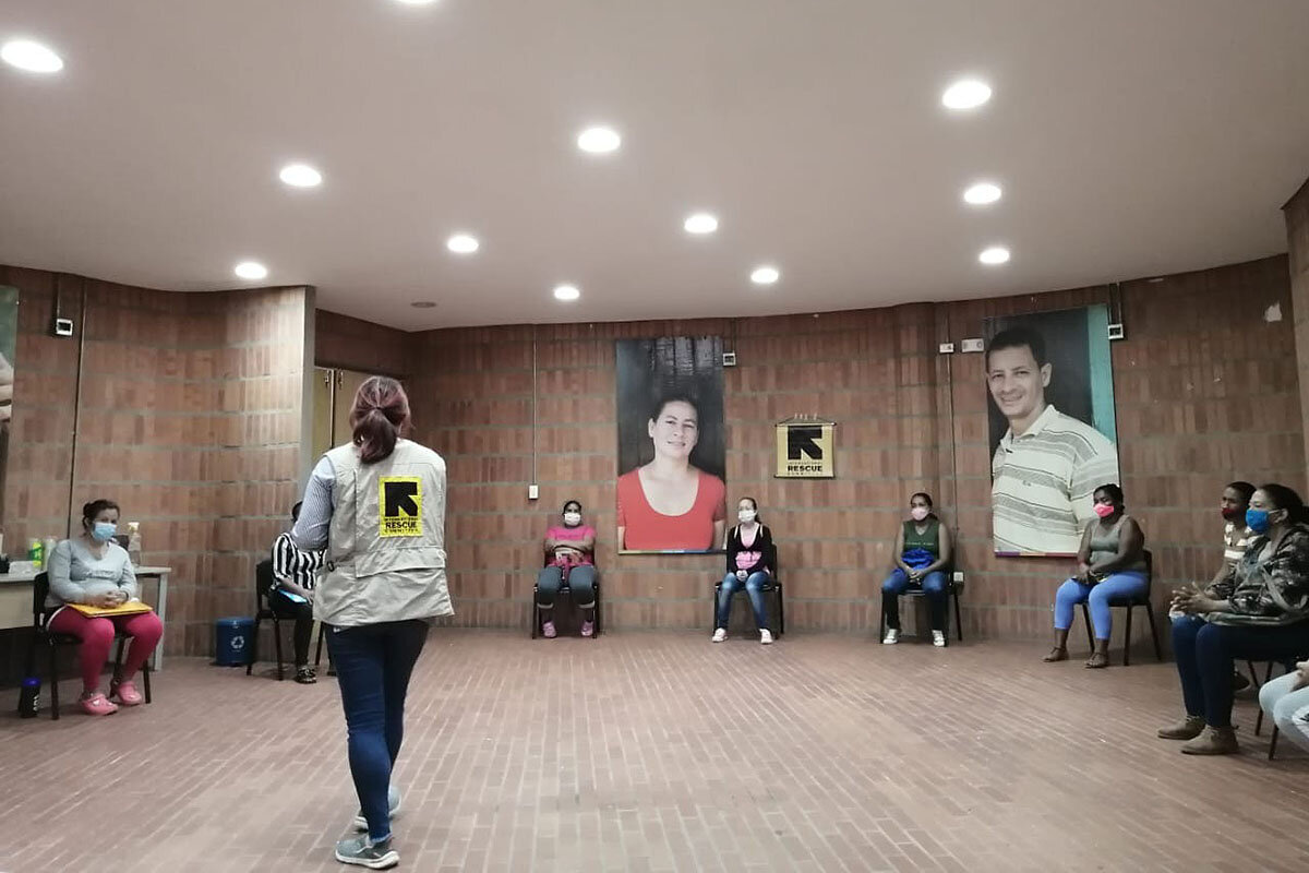 On a recent morning dozens of Venezuelans in Medellín came in shifts to sit six feet apart, in masks, in a line to receive cash transfers from the IRC. The funds were designated for nearly 250 Venezuelans and are intended for them to buy food and pay rent, the IRC said.
