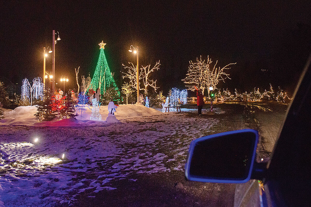 A larger-than-life nutcracker – an actor on stilts – approaches a line of cars, towering nearly as tall as the surrounding trees lit up in twinkling red, white, and green lights. Canadian Tire’s Christmas Trail, set up on the north side of Toronto, is a one-mile journey through a winter wonderland of elaborate light installations, live dancers in fairy costumes, and faux snowfall.