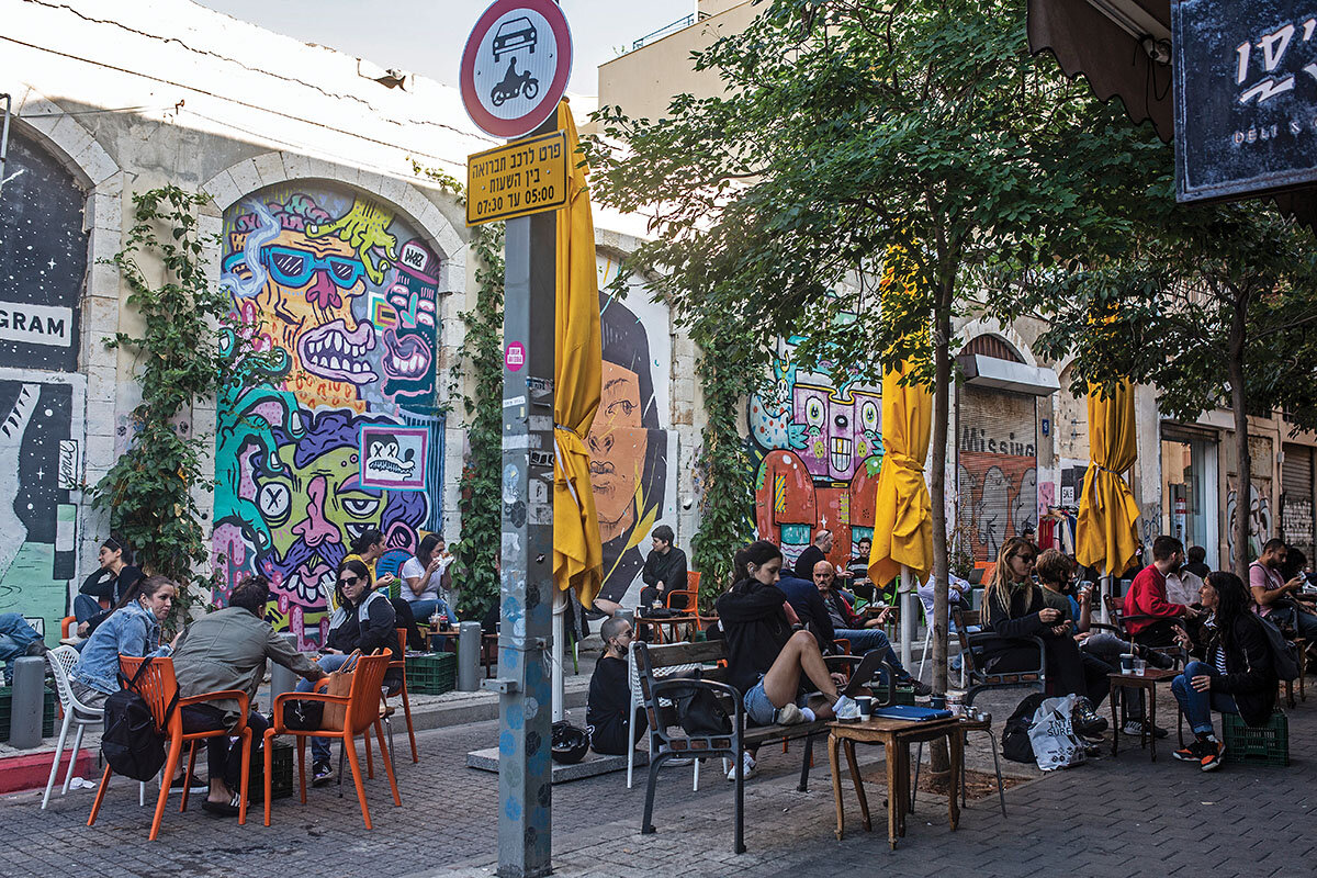 In Tel Aviv’s Florentine neighborhood, young people snack on bourekas and paninis as they relax at cafe tables placed at prudent social distances, occupying the same asphalt where cars once sped by or created clouds of exhaust in their search for parking. Blocking vehicles from the road are gray metal bollards that now stand as inanimate guards.
