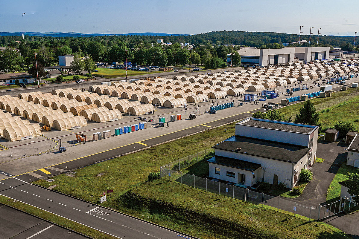 To handle the influx, the military brought in nearly 1,000 service members from outside the region to help out the thousands of U.S. personnel at Ramstein. They’ve distributed 110 tons of donated clothes, assembled 542 tents big enough to hold about 30 people each, and played in daily soccer matches with the Afghans.
