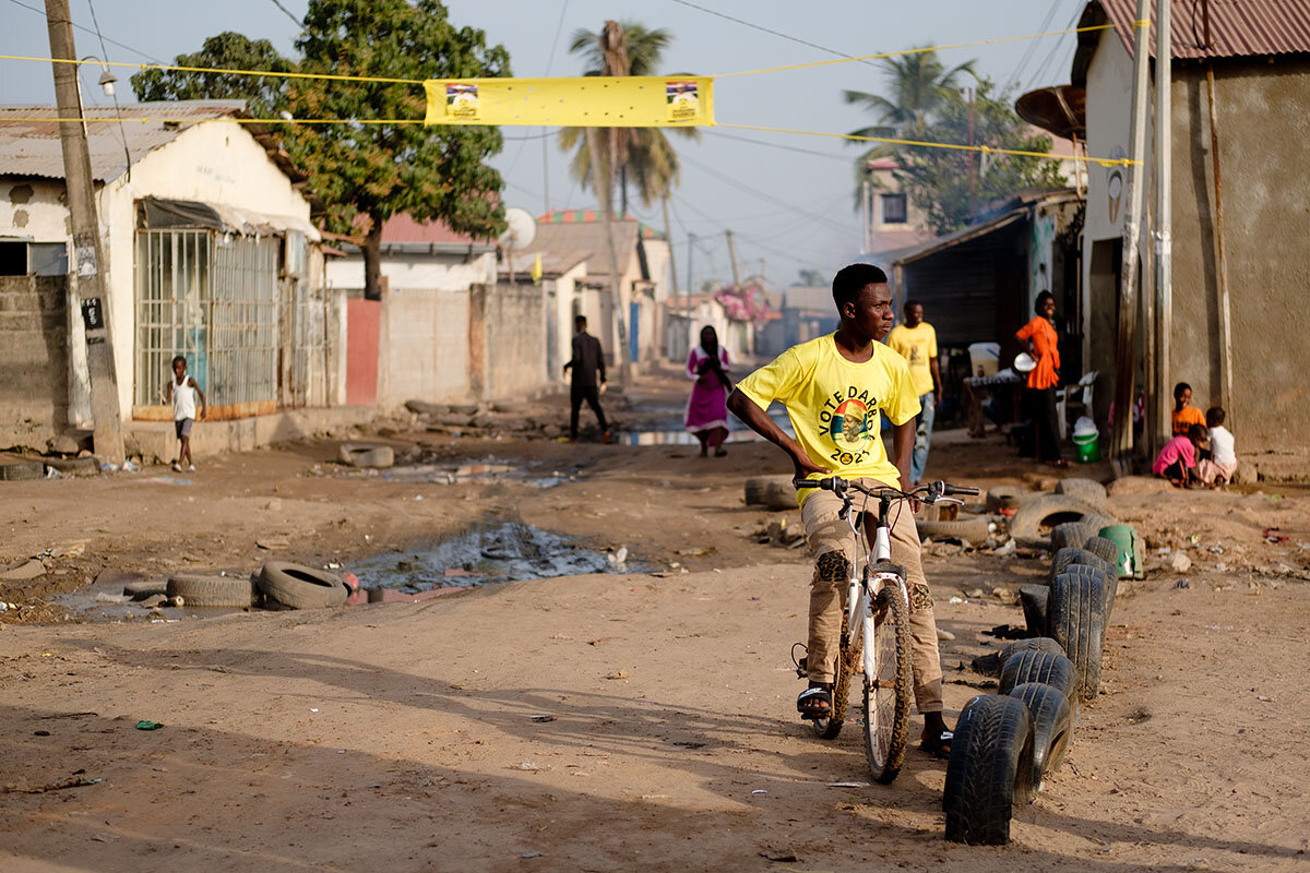 While some worry that Mr. Barrow’s attempt to stay in office is reminiscent of Mr. Jammeh’s, others are happy to vote to reelect the president. “Adama Barrow and Yahya Jammeh are not the same,” says Lamin Trawally, a coffee shop owner who was surprised his vote in 2016 for Mr. Barrow resulted in actual change and would like to see the president take on another term.