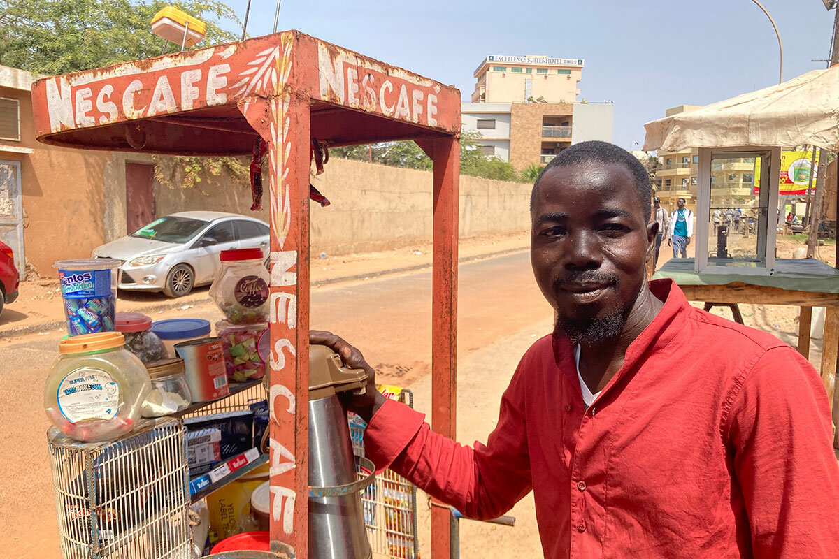 Ms. Morgo’s brother, Idrissa, a coffee vendor next door, is often there too, serving hot drinks and lending a hand in his sister’s kitchen. Their customers often come from neighboring West African countries including Burkina Faso, Ivory Coast, Togo, and Benin.