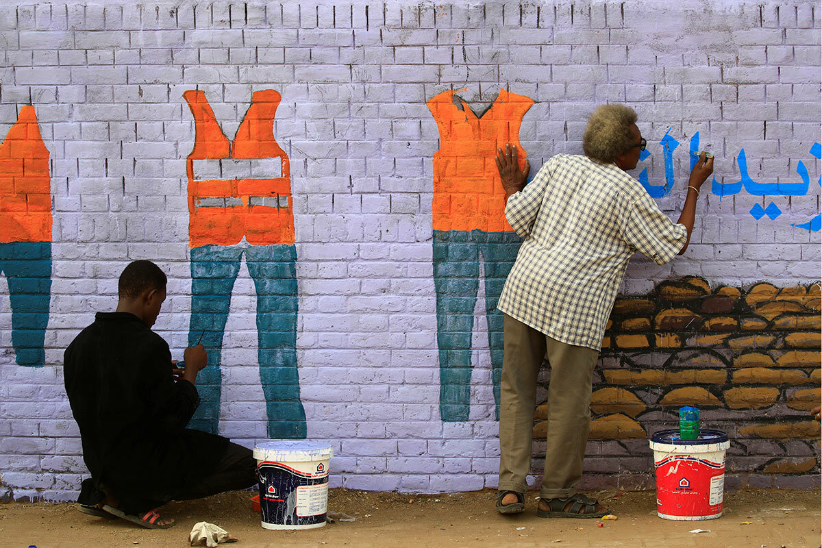 Overnight, murals appeared on vacant walls and underpasses, depicting the movement’s martyrs and foot soldiers, and sometimes sharing the times and dates of protests. A social media movement, #BlueforSudan, resulted in people around the world changing their social media profiles to blue squares in solidarity with the country’s protesters.