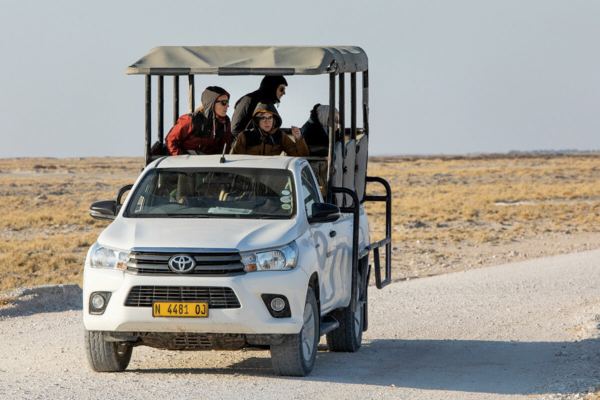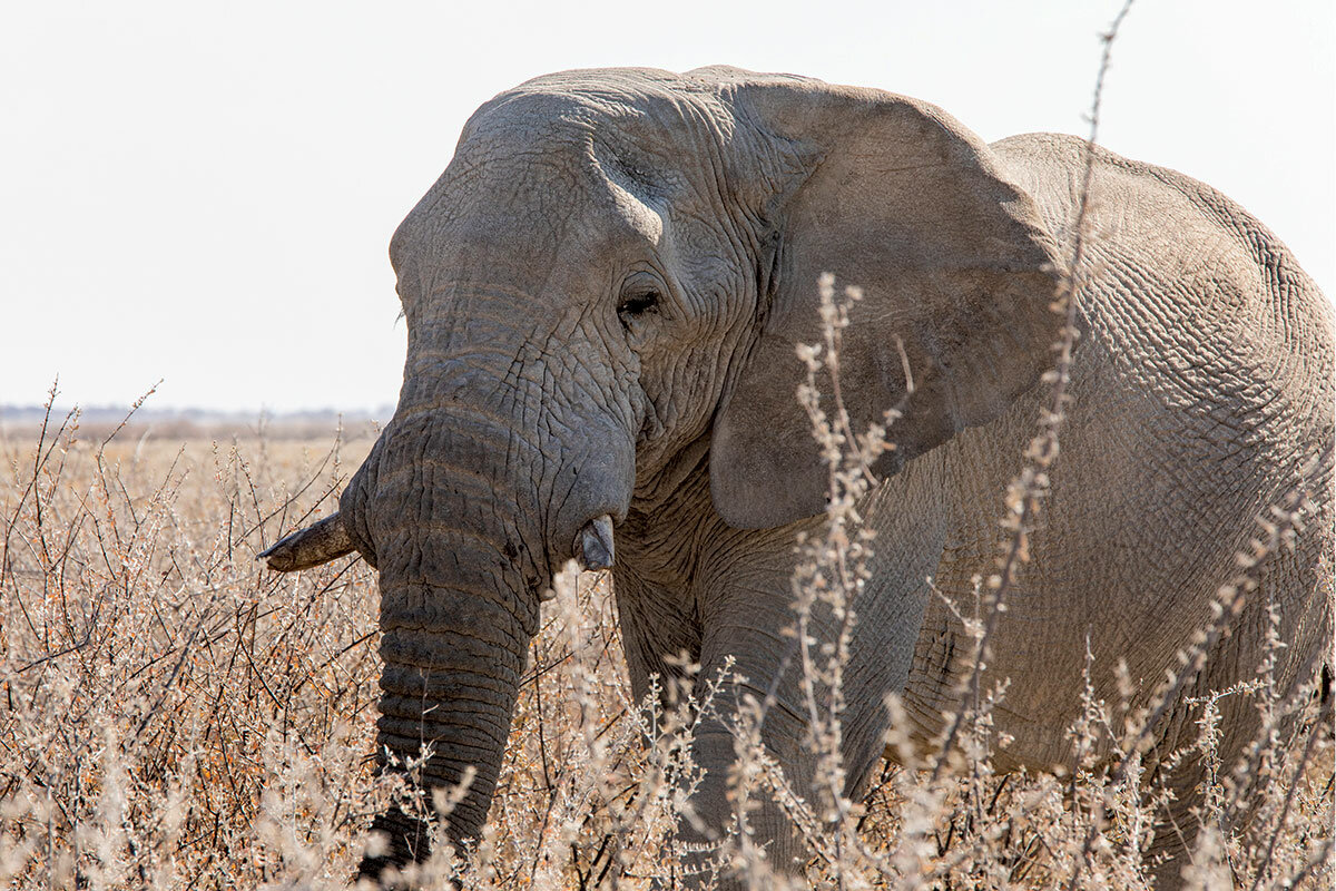 This held true as we observed giraffes, zebras, oryxes, and springbok while on assignment at Etosha National Park in Namibia. That is, until we spotted the elephant. Solitarily, it trudged across a barren field in the distance en route to one of the many watering holes that draw an abundance of wildlife during the winter’s dry season in this park, one of Africa’s largest.