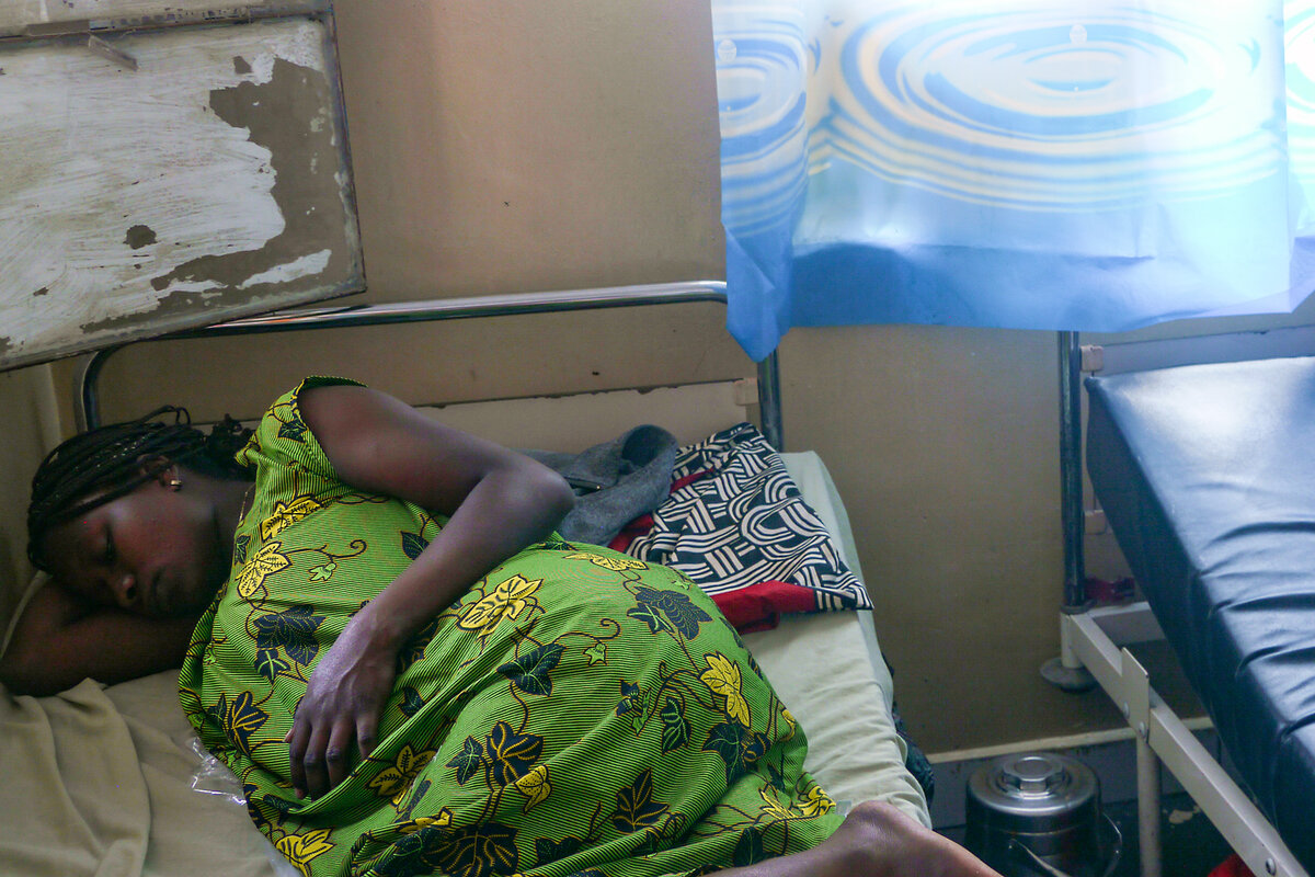 As Ms. Tumaini breathes through her contraction, midwife Daddy Ngeve walks down the row of beds, stepping carefully on a floor still slick with turpentine from cleaning. She bends over each woman in turn to lay her reassuring hand on a sweaty shoulder or to whisper encouragement.
