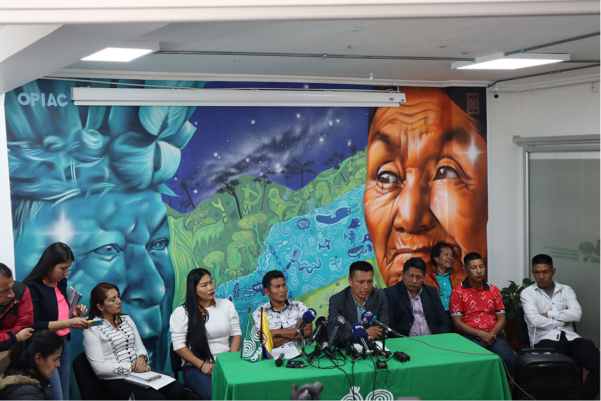 At a news conference in Bogotá last week, Indigenous leaders said there’s a need to guarantee basic rights for Colombia’s Indigenous people. “We hope for more state presence via social programs,” says Ms. Román, “but recognizing our own Indigenous systems as well.”