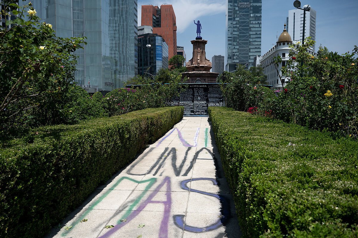 The demonstrations have grown each year. In 2021, activists placed an unsanctioned “guerrilla” statue of a purple woman with her left fist raised above her head on the Paseo de la Reforma, one of the oldest thoroughfares in Mexico City, replacing a statue of Christopher Columbus that once stood on a tall column at a roundabout. Now named Justicia, it is dedicated to women who were murdered or who disappeared. Mexico City officials agreed not to take down the new statue, a prominent feature of the march route. The former Columbus roundabout, too, has been renamed Glorieta de las Mujeres que Luchan, or the Roundabout of Women Who Fight.