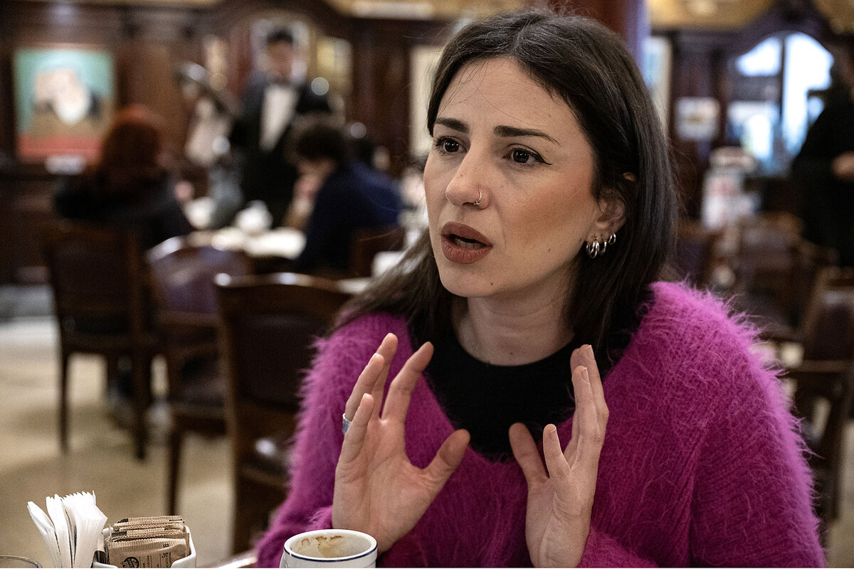 Tango composer, musician, and feminist Camila Arriva discusses tango at the historic Cafe Tortoni on Aug. 16, 2024, in Buenos Aires, Argentina.