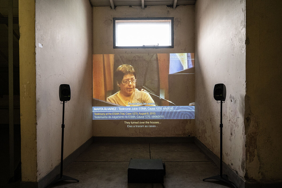 As she speaks, high school groups and other visitors walk around the floors above, where detainees were held, and where some were forced to produce dictatorship propaganda. Monitors play excerpts from the court testimony of both ESMA workers and their victims.