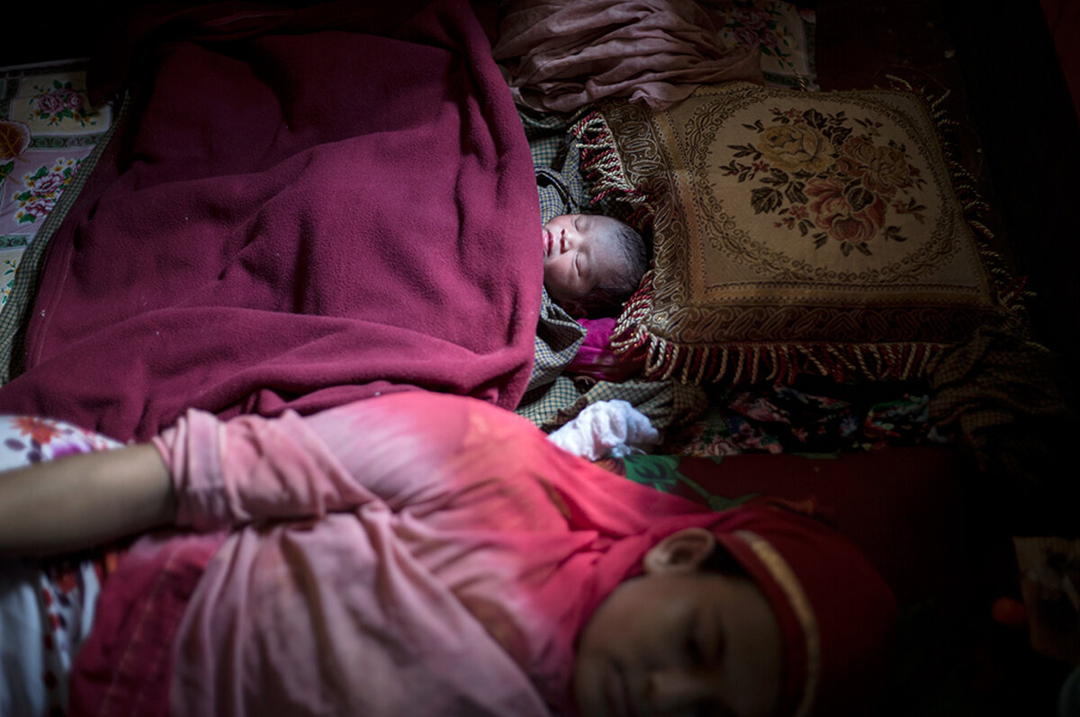 As Roshid and Begum tell their story, a pregnant woman arrives at the front door. She is about to go into labor. Begum runs to the kitchen to grab fresh water while two doctors help the woman onto a bed in the living room. Another woman lies on the floor next to her newborn baby.