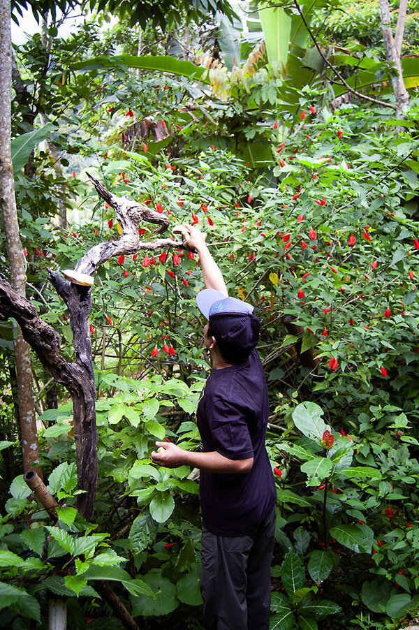 As the mist rises from the mountain top, Mr. Suparno leads visitors down a winding concrete path into the woods. Every turn reveals a new house or homestay, some with bird viewing areas set up in the backyard. High up in a tree, a man with a sickle is harvesting sap from a sugar palm, and a few feet off the path, a pair of brown Horsfield’s babbler chicks huddle in a low twig cup, safe from harm.