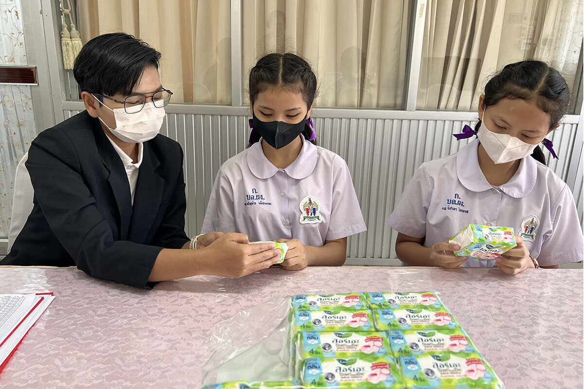 “The program helps a lot because some students with financial constraints previously had to wear one period pad for the whole day, with the help of tissue paper to prevent from soaking, which is unhygienic,” says school principal Saipin Lomphong. “Now parents don’t have to pay more stipend for children to buy period pads anymore.”