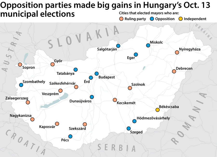 “We cannot take it for granted that this victory will automatically lead to a defeated Fidesz in 2022,” says Mr. Krekó, also a Futures Fellow at the Institute for Human Sciences in Vienna. “The situation of the new mayors will be quite difficult. ... On the other hand, they will have some chance if they can have some EU funds to show that there is a world without Fidesz and that they can run cities successfully.”