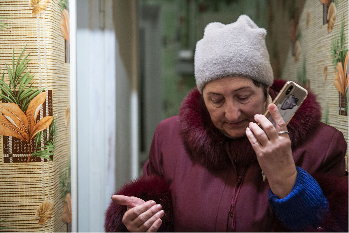Offered the use of a telephone to call her son’s family in Dnipro, she breaks down in tears of gratitude. Her daughter-in-law seems happy to hear from Ms. Gontarenko at last, but there is no talk of her joining the family.