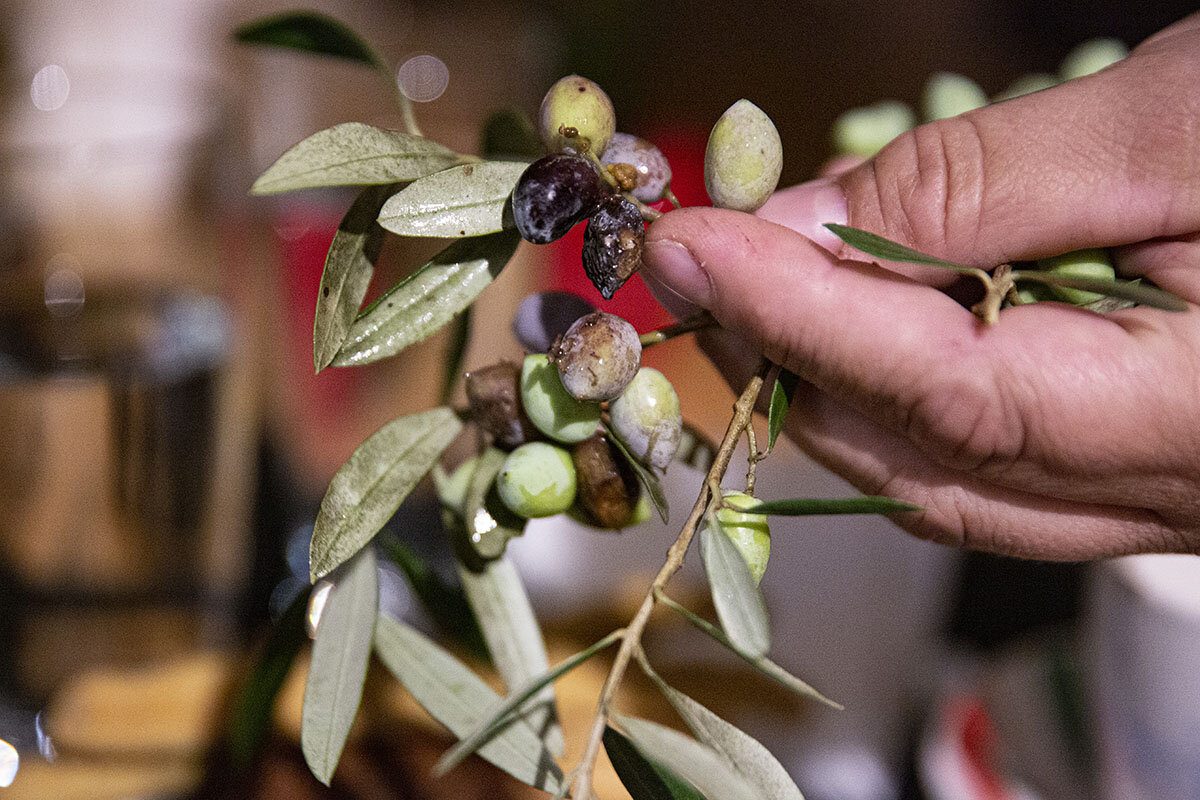 She and her husband have been battling the last six years against fungi, which grows in humid conditions. They consider themselves lucky because only 10% of their trees are affected. The fungi cannot be eradicated, only contained. They are also trying to use more gentle approaches to olive pickings. Long are the days when they would bang the trees with sticks to unload the olives. Now they shake them gently with mechanical tools.