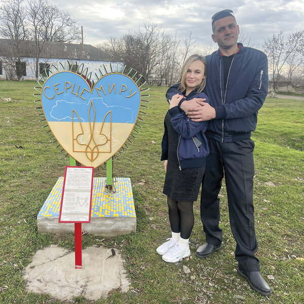On a brisk morning in March, the auto-mechanic-turned-soldier drives the three hours from Odesa with his bride of one day, Anna, for newlywed photos at the heart.