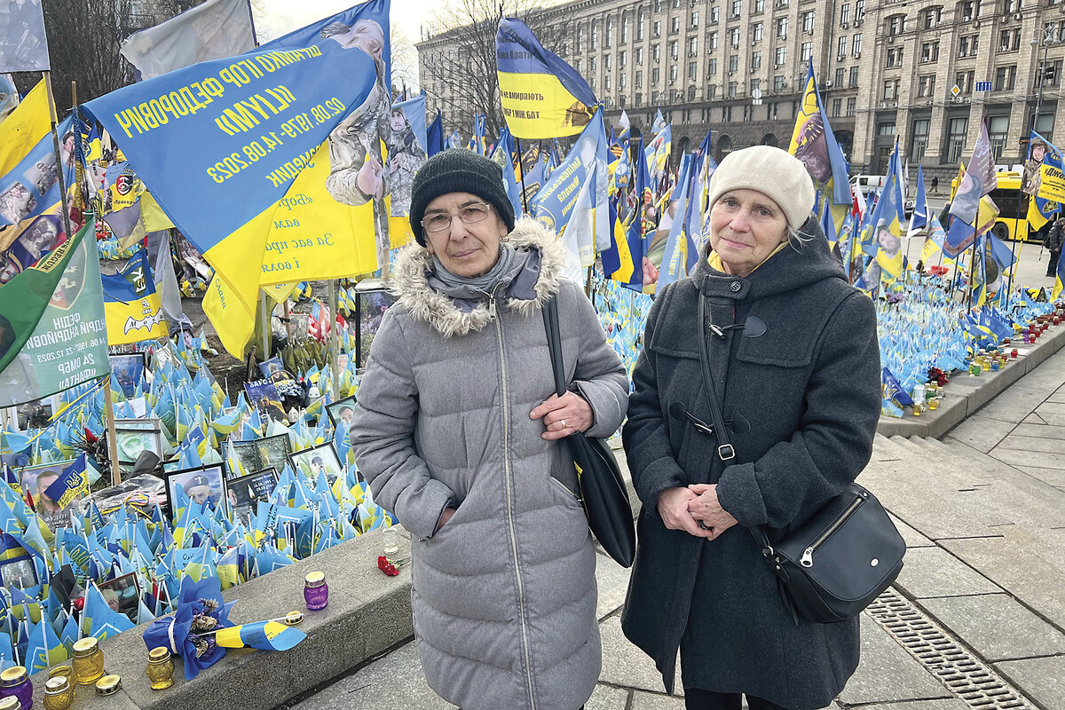 Two friends who came in from the Kyiv suburbs say it is important to them to demonstrate their gratitude to the soldiers fighting to keep Ukraine free. “It is thanks to people like this soldier that we have hope to live in a free country and not under the boot of the oppressor,” says Anna Mushynska, whose son Petro was killed in the war in 2024.