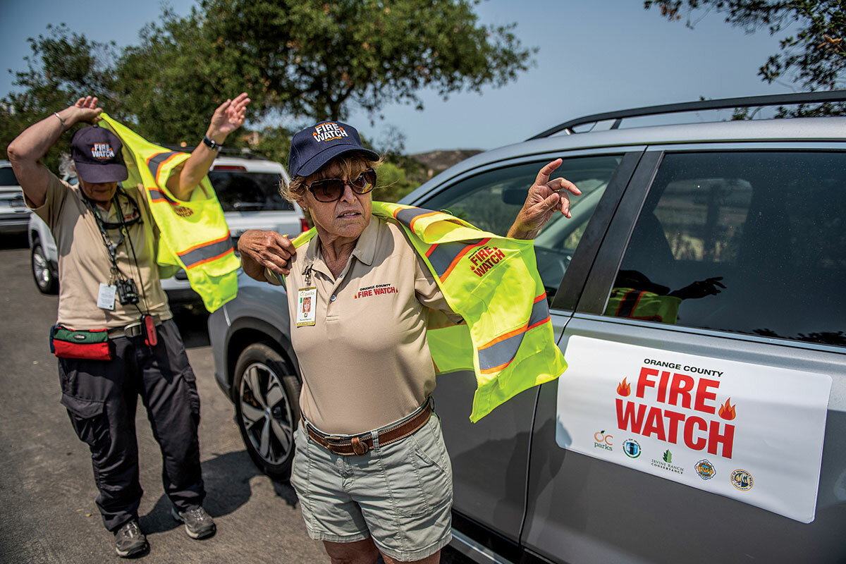 A retired fire captain, Mr. Hutchinson is part of Orange County Fire Watch (OCFW), a group of 328 volunteers who patrol wilderness parks, remote highways, and even a cemetery when the threat of wildfires looms. The goal is to deter arsonists, educate the public about fire safety, and spot blazes before they swirl out of control, says Tony Pointer, who manages the network for the Irvine Ranch Conservancy , which oversees nearly 30,000 acres of open space.