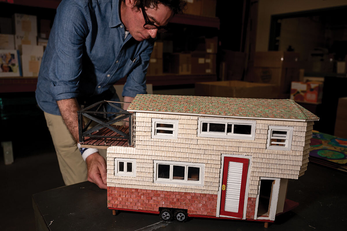 Finished artwork lines the shelves of this airy warehouse, home to the permanent collection of the Prison Arts Program. Mr. Greene reaches up to a high shelf and retrieves a model RV, rendered in detail down to the windowsills. The shingles were cut from cardboard with a nail clipper and glued with a mixture of floor wax and nondairy creamer. Another artist unraveled a prison blanket and crocheted the threads into a 3D horse.