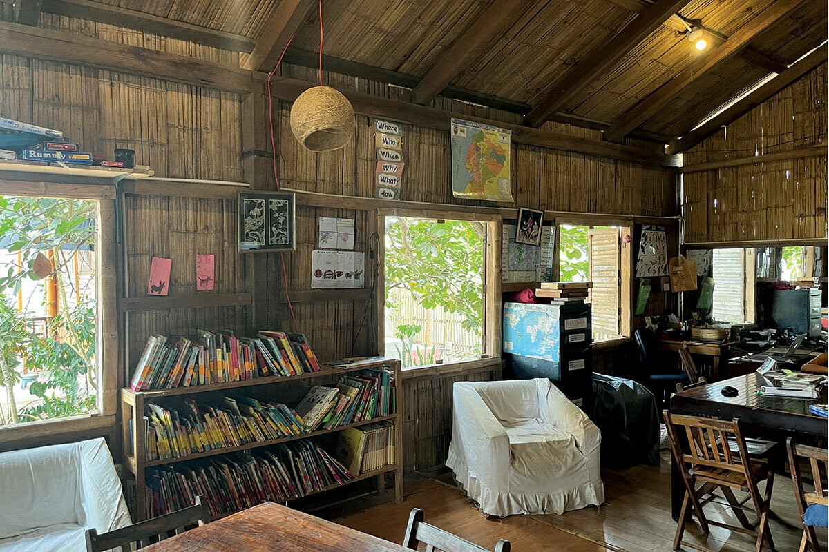 Visitors take off their sandy shoes before stepping into the bamboo building with two-story-high ceilings. On weekday afternoons, kids are expected to read silently for 15 minutes. Then they have the chance to work on homework, pick out a new story from the 7,000 mostly donated books, take language classes with visiting volunteers, or, on Fridays, select games from the high shelf running above the windows.