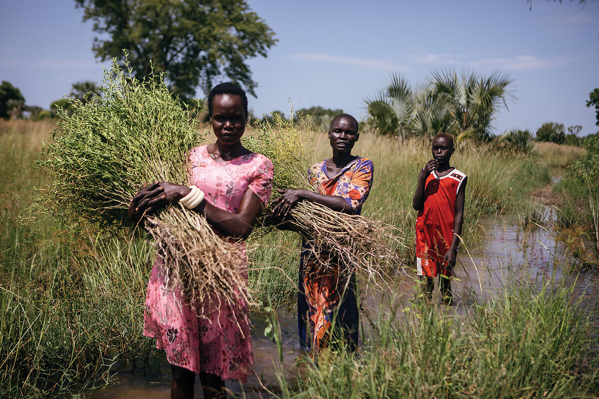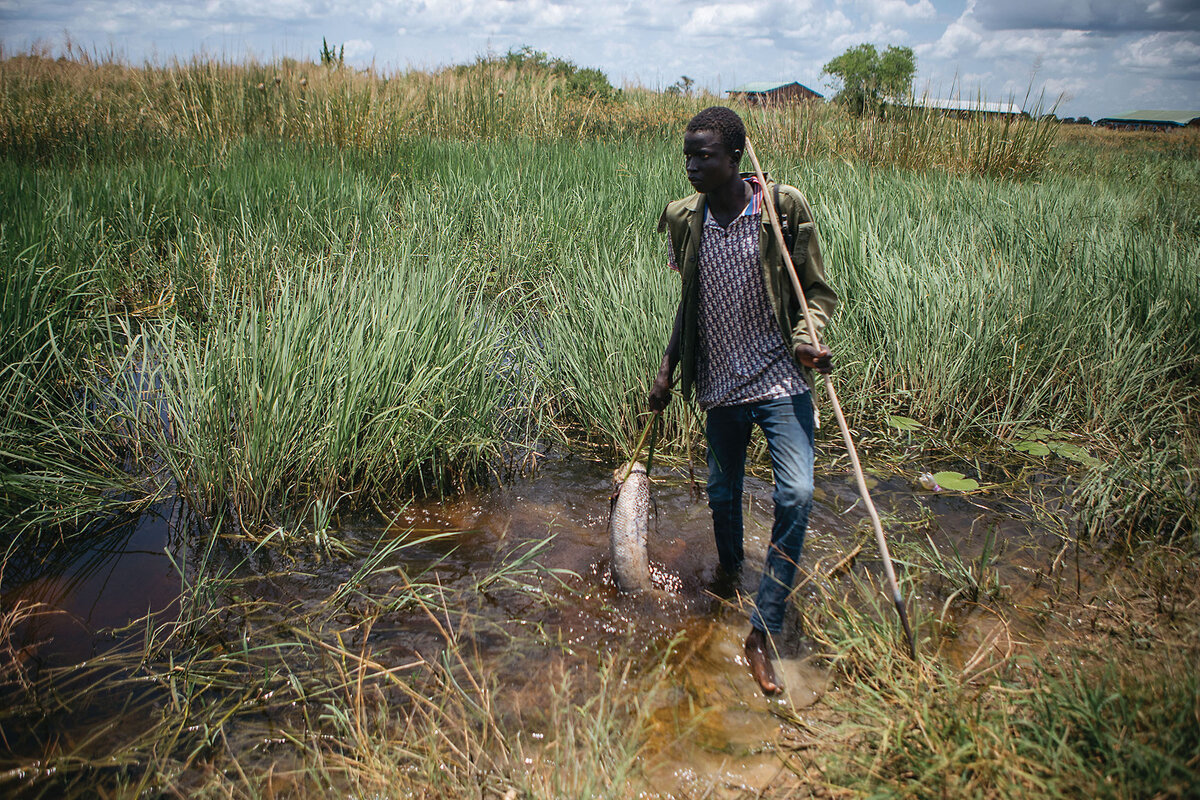 During record flooding four years ago, the water reached chest level in their thatched mud hut. But Ms. Nhial did not relocate – as many of her neighbors did – to the Mangalla camp run by the United Nations refugee agency. “I stayed because of my son,” she says. “I was worried about him being bullied [in the camp] or running away.”