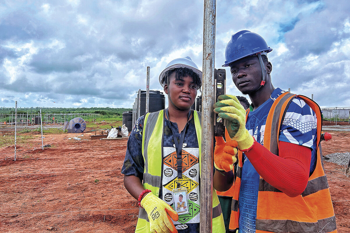 Across a large stretch of open field in Nigeria’s southwestern Ogun state, young people in safety helmets, goggles, and reflective jackets are assembling frames of what will soon be net houses, a type of greenhouse. Guided by supervisors, the trainees carefully fit steel rods into holes in the red-brown earth, anchoring them in concrete. Once complete, the net-covered structures will be lined with troughs filled with rice bran and sawdust – alternatives to soil. A network of pipes and tubes will deliver fertilizer-rich water to the plants at set intervals.