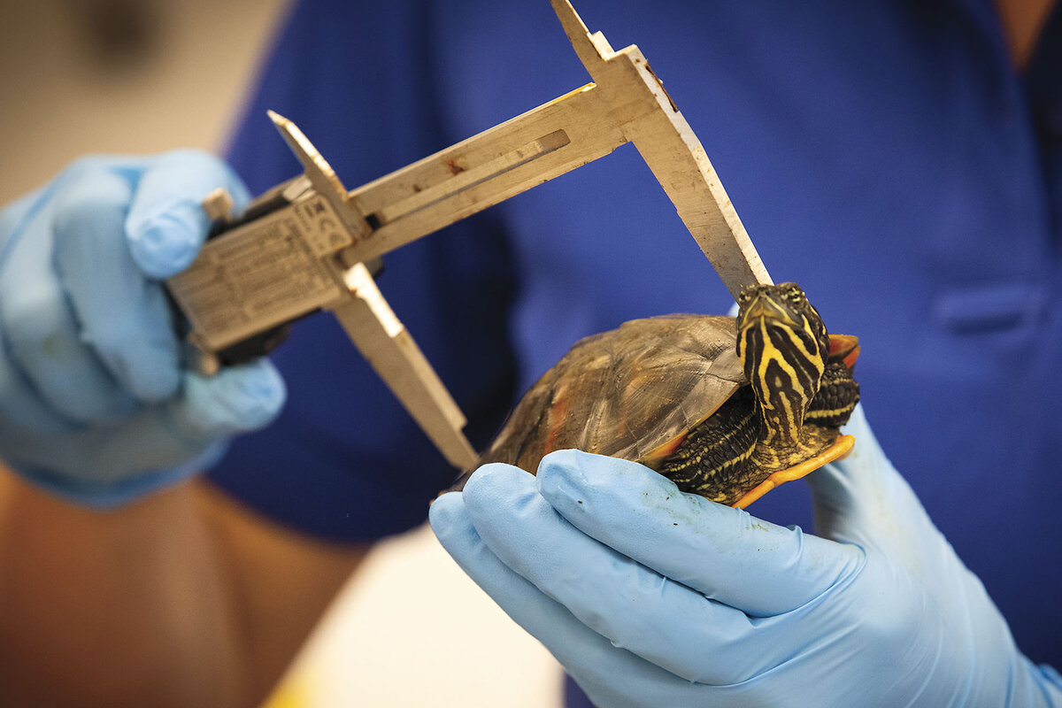 “Our goal is to put them in a warm, food-rich environment for the duration of the winter,” Mr. Ward says. His classes at the private school have raised about 100 turtles for the program over two decades. About three or four students volunteer to participate each year.